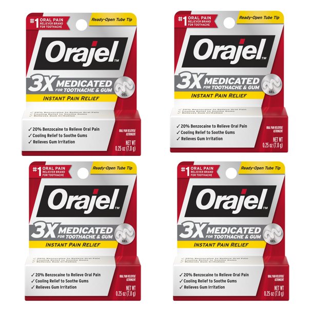 Orajel 4x Medicated For Toothache Gum Relief Cooling Gel 0 25 Oz Pack Of 4 Walmart Com